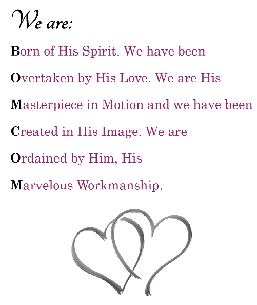 Our individual characteristics that God has selected for each of us are like a Poem in Motion.